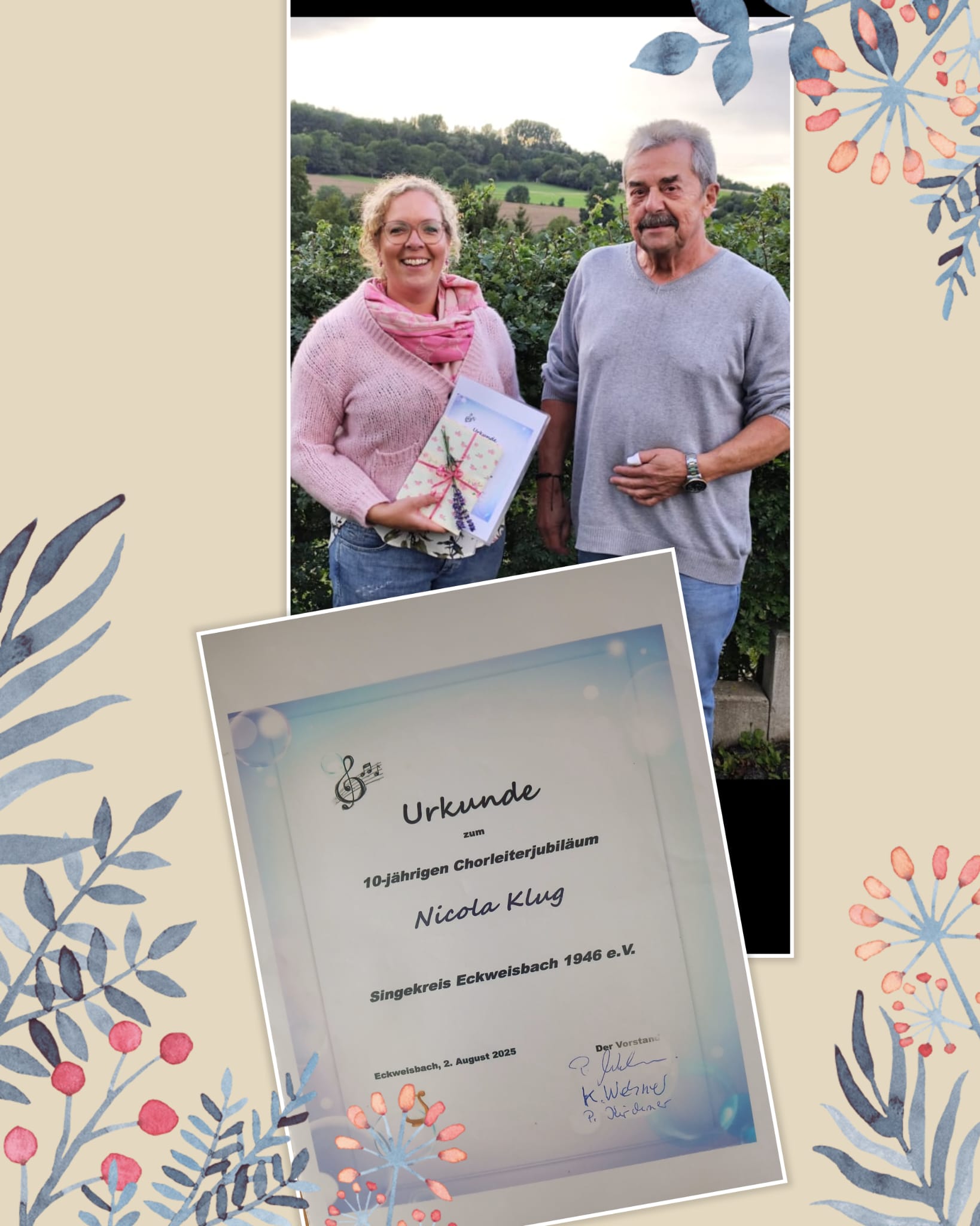 | Im Rahmen des diesjährigen Sommerfestes wurde unsere Chorleiterin Nicola Klug für ihre 10-jährige Tätigkeit geehrt |
